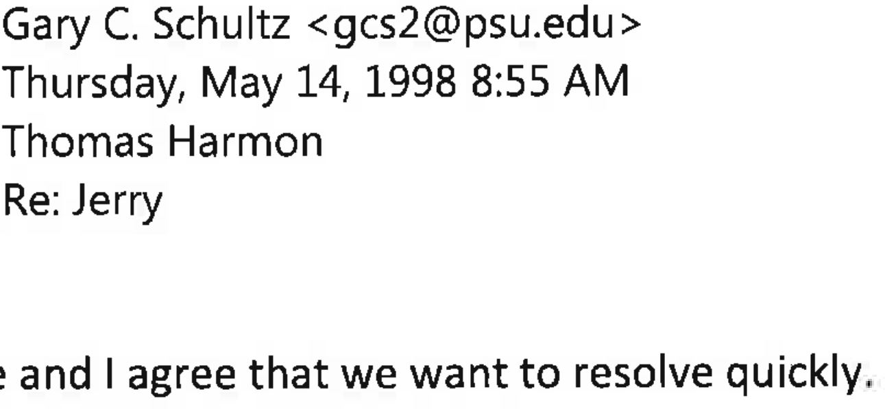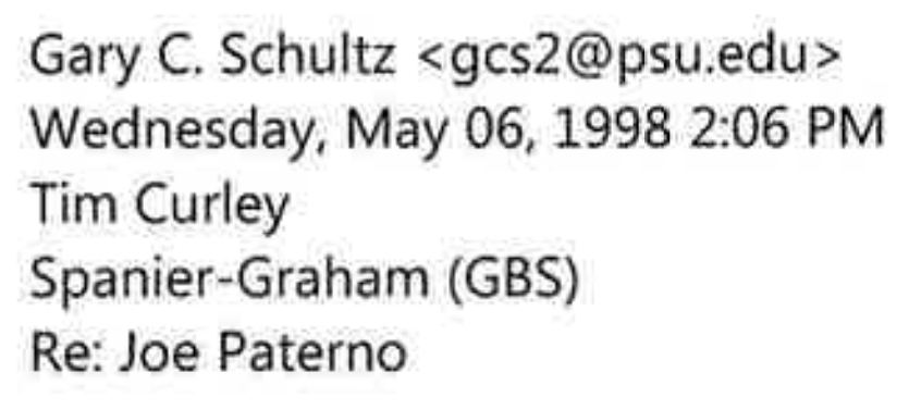 This email is also from Gary Schultz's computer from Gary Schultz to Tom Harmon with a further email to Tim Curley at the bottom. So this is not about different computers or different email programs.
